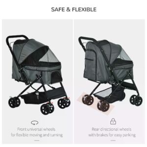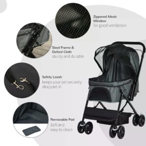 Take the dog outdoors with you safely thanks to this pet stroller from PawHut. It comes with smooth-rolling wheels and a handle, making it easy to take with you on the road. The top basket is spacious so they get plenty of room inside, protected with a mesh window to allow air in and out and a three-level adjustable canopy to shield them from above. It comes with a bottom basket and zipped pouch for easy storage on-the-go, finished with a reversible handlebar so you can push this piece either facing your pet or looking away from it. Suitable for small dogs such as Bichon Frise and Pug.