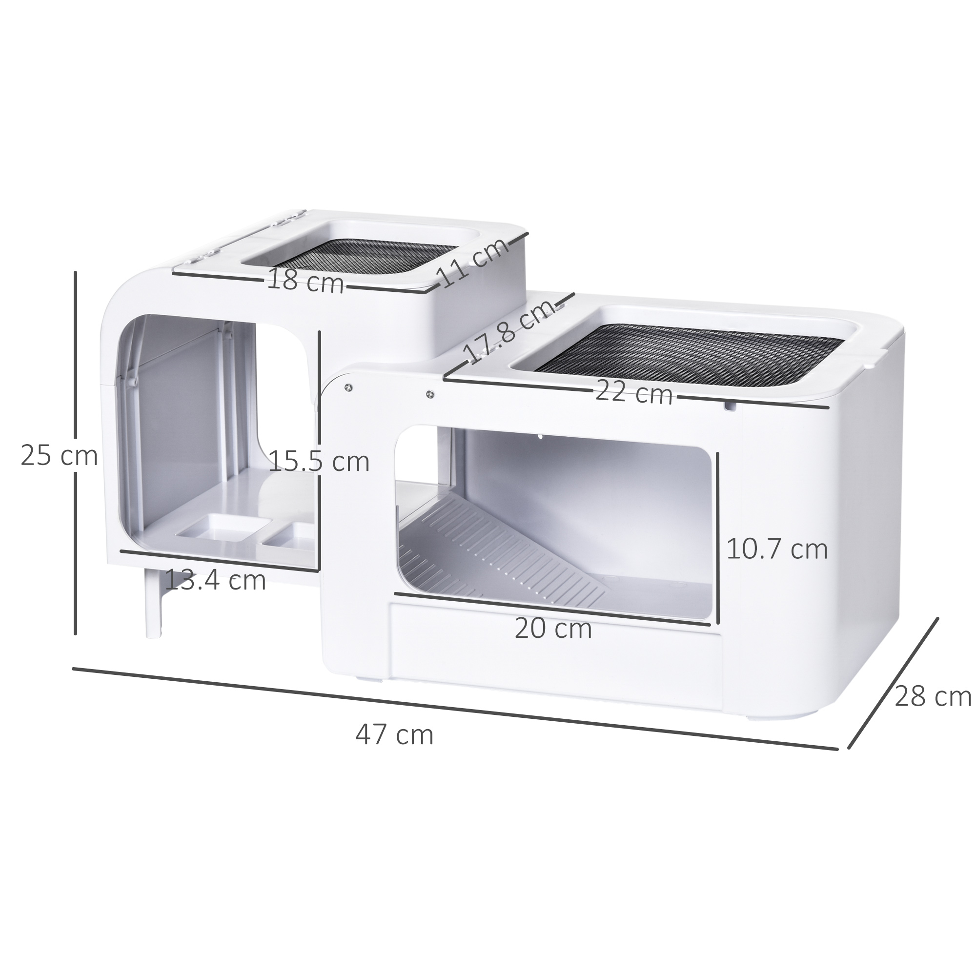 • DIMENSIONS: 25H x 47L x 28Wcm. Water area: 20H x 32L x 28Wcm. Basking area: 20H x 15L x 24Wcm.