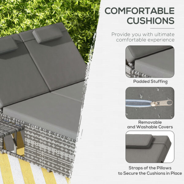 Outsunny’s 2-person Rattan Daybed will surely be a great addition to your existing outdoor area. This daybed provides you with total relaxation, all in the comfort of your home. Thick padded upholstery, two free pillows and the 5-level adjustable reclining backrest bring unprecedented comfort to your seating and lying experience. It comes with a retractable small tray on both sides for extra convenience. Add charm and elegance to your gazebo with this double chaise lounge!