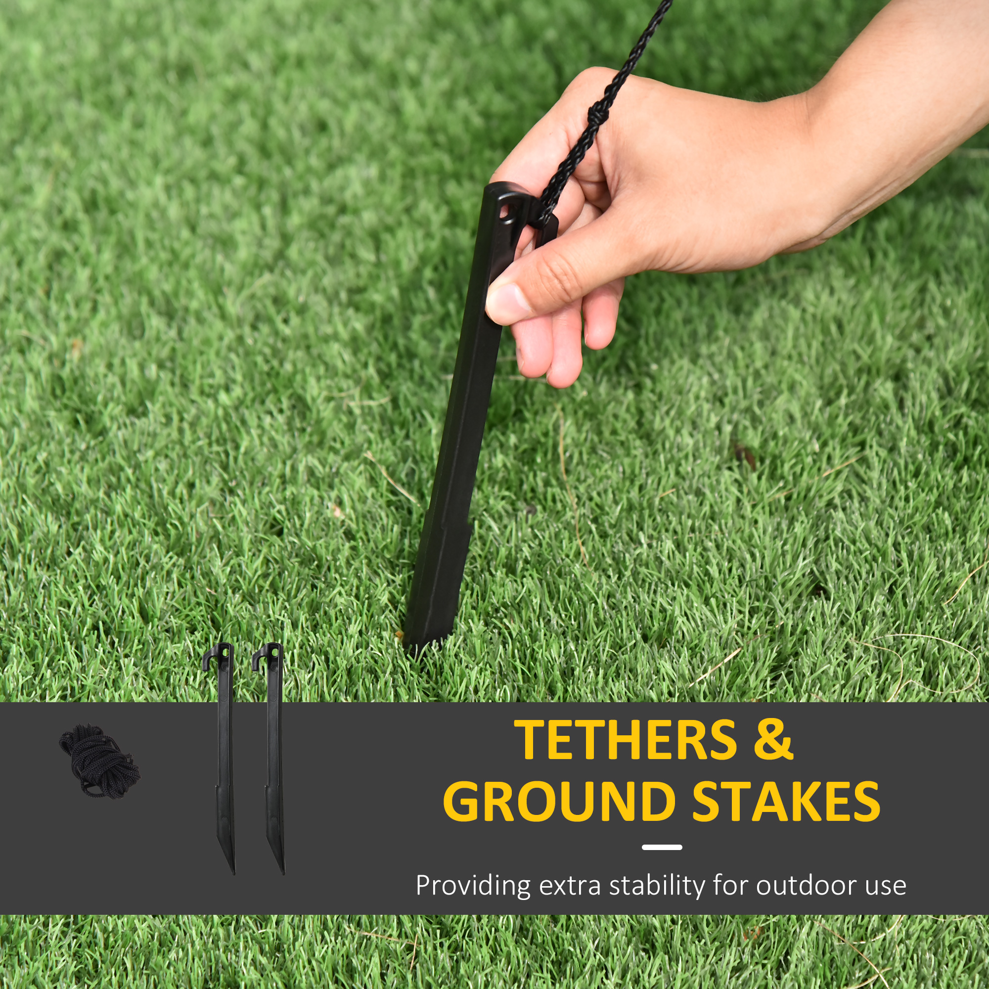 - Comes with two ground stakes, two guy ropes and a sandbag so it stands in place