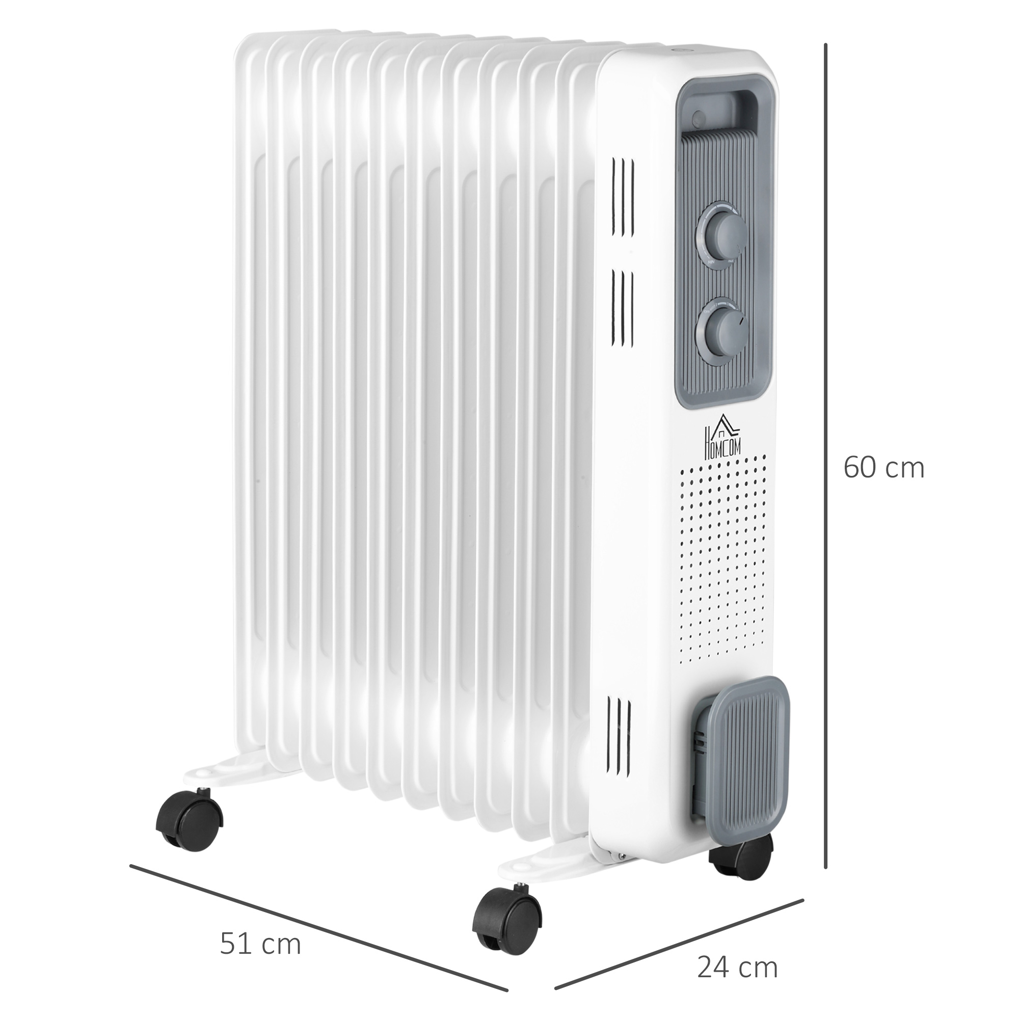 Keep warm with this oil filled radiator from HOMCOM. With an adjustable temperature of 7-35?? and three heating modes, you’re in control of the heat you want. The overheating and tip-over function will turn it off safely, so you can enjoy this heater with peace of mind. Move with minimum fuss using the wheels and handle, making sure no room goes cold. It’s complete with a cable organiser for tidiness. Get a cozy winter by HOMCOM electric radiator.