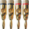 Metal body (gold plated) with coloured identification bands. Will accept cable up to 5.5 mm diameter. Features screw terminals. Packed 2 pairs per pack.