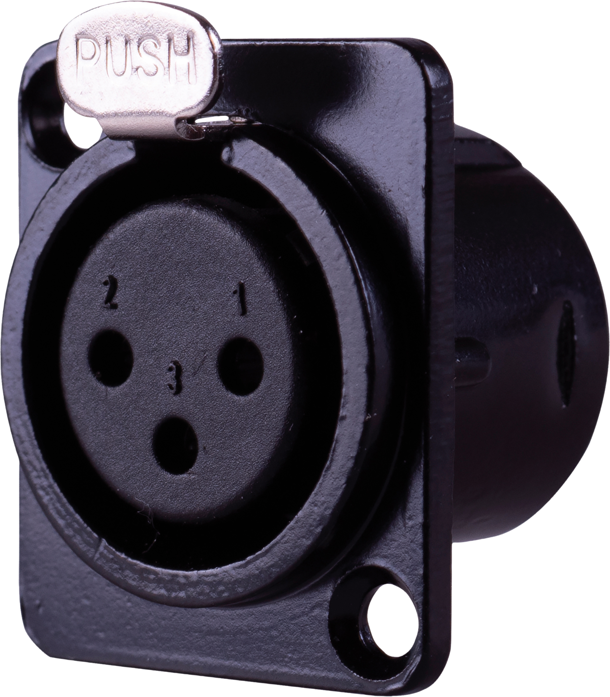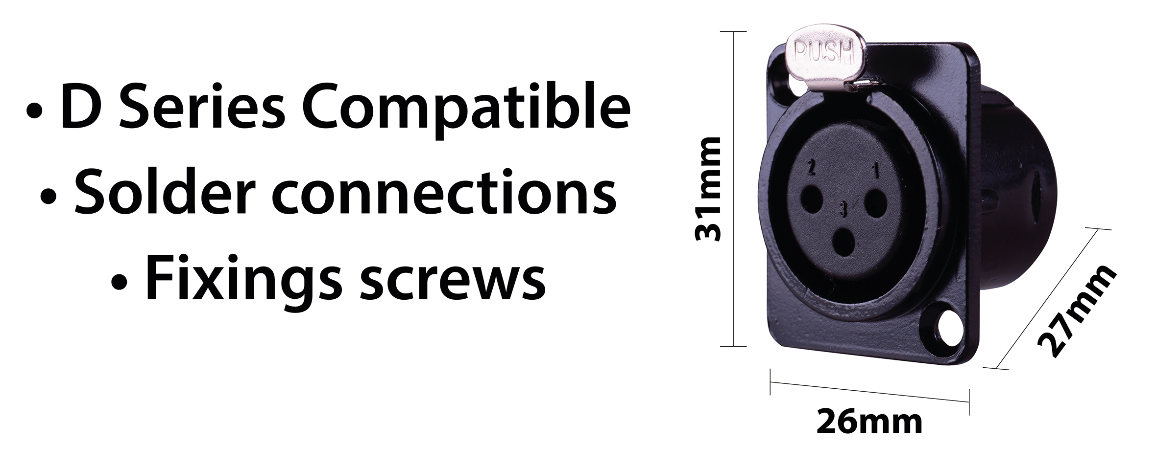 Chassis Mount 3 pin XLR Female D Series Compatible with Solder connection and fixings screws