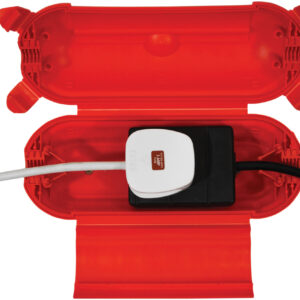This safe box from Eagle is designed for connection of a single plug and socket (Extension lead not supplied).It comes with an IP44 Splashproof rating making it ideal for exposed areas. It is designed to protect power connections both indoors and outdoors. Helps reduce risk of electric shocks. A bonus feature is that it can be wall mounted with the two slots at the back (wall mounting accessories not included). There are two rubber entry holes for the cable at both entry and exit points. The storage of the plug aids with accidental plug and socket detachment. Suitable for a range of applications such as caravan and camping, to garden and household power tools.