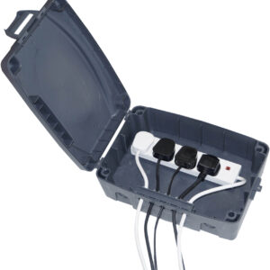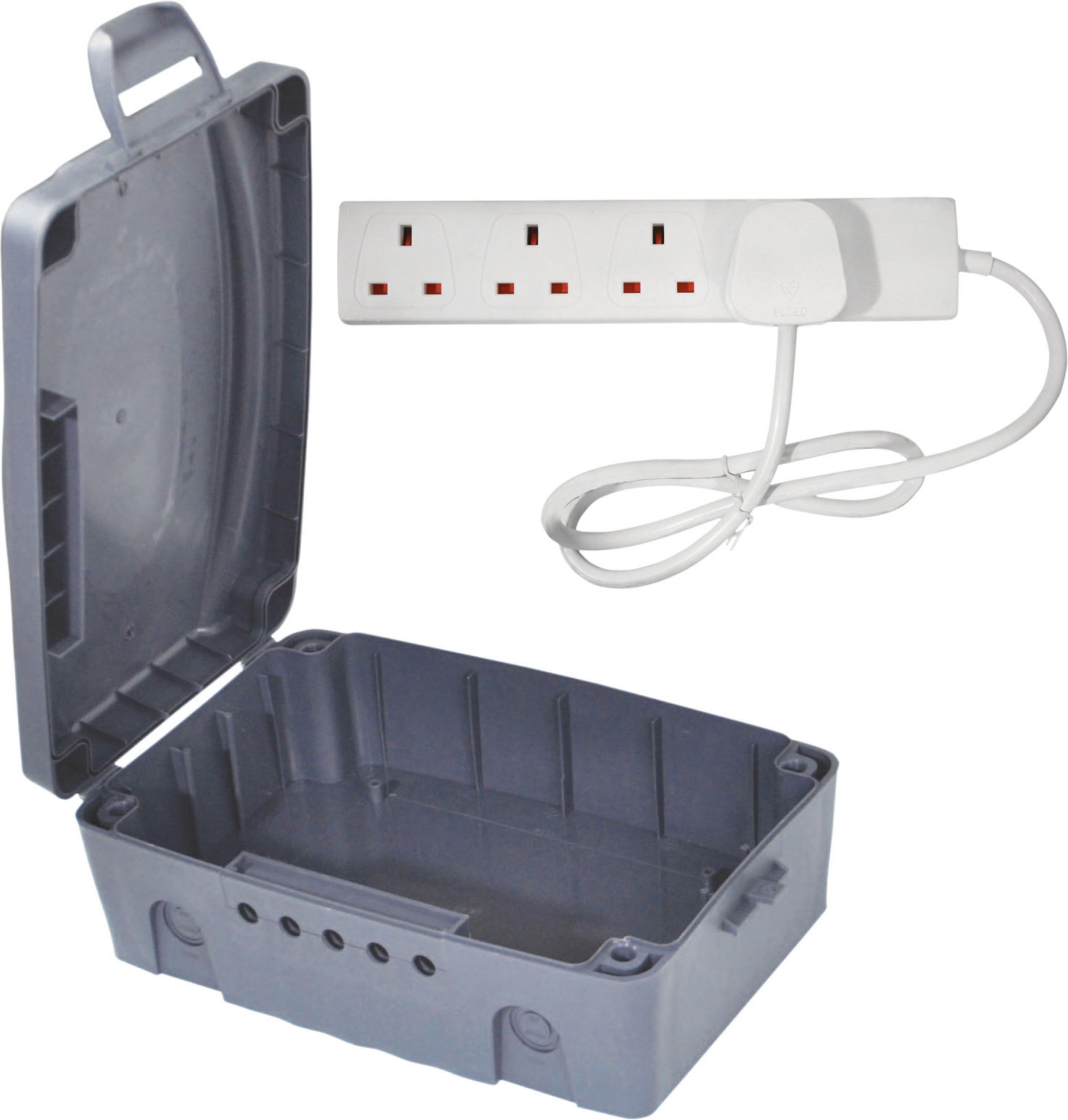This IP 54 rated electrical connection box offers a safe and simple way to house multiple outdoor connections, reducing the risk of dirt and dust build up. It s provided with a 4 Gang 5M Extension lead, making it a ready to use solution. Also Ideal for use with extension reels, cords and up to 4-way extension leads, including transformers and timers. A great storage solution for reducing excess cabling, it can aid the reach of electrical equipment in the garden, reducing the risk of electrical hazard. It can be easily and securely closed using the simple hinged locking system. The box provides a simple yet effective lightweight and portable solution to be used with a range of electrical applications. Ideal for use with anything from hedge trimmers to lawn mowers to outdoor lighting and seasonal lighting.