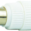 Standard quality right angled coaxial line socket, plastic 9.5 mm. Screw terminals.