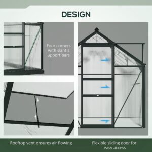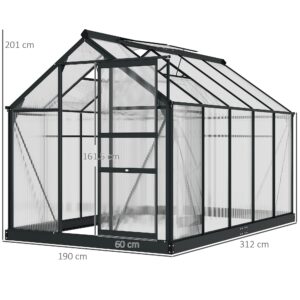 Start and continue the season right with this Outsunny 6ft x 10ft greenhouse. An open, walk-in design means it’s easy to enter and leave, whilst giving you the full free space to set it up how you want. A powder-coated aluminium frame means a strong structure, with four ground stakes included to pin to the ground. Features a sliding door for easy access in and out, with a lift-up roof which holds in place – it’s easy to let in fresh air, whenever you want.