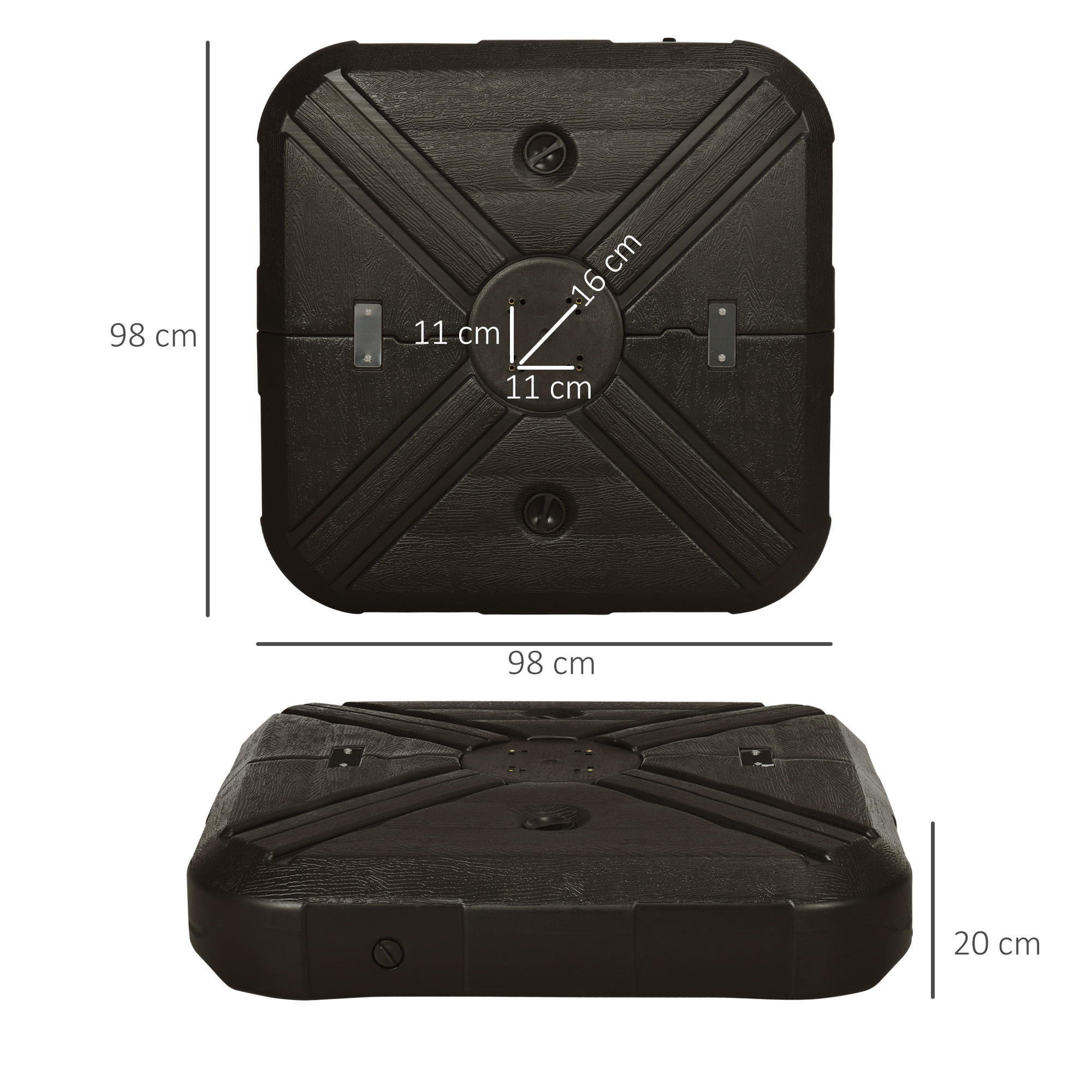 Ensure your 360?¨ rotating patio offset umbrella is always held firmly in place with the base for cantilever parasol from Outsunny. Made from strong HDPE, it needs to be filled with water or sand to increase the weight, keeping stability outdoors. Comes with smooth wheels, easy to move around. Whether you wish to use this for the garden, patio, or poolside, this is the parasol base for you. Combine our umbrella weight base with a cantilever roma umbrella and create your own oasis under shade.
