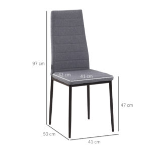 Complete your kitchen or dining area in matching style, thanks to this four-piece chair set from HOMCOM. Seats are cushioned for comfort, with high backs for support. Linen-look upholstery is smooth and in style. Steel legs for full support when seated.