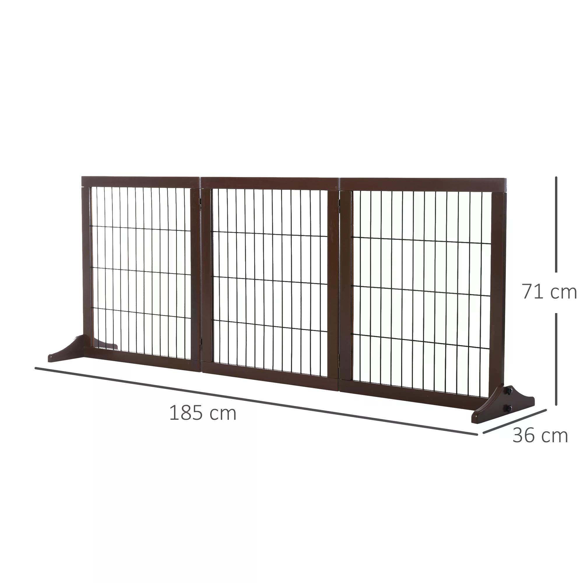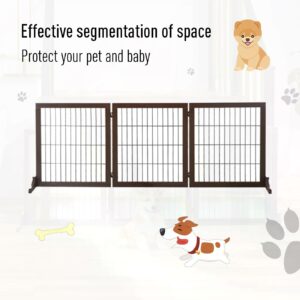 PawHut freestanding pet gate can safely and effectively limit the range of your pet’s activities. The three solid wood frame gates connected by hinges can be rotated into various angles. They are suitable for being placed in narrow aisles, staircases, or wide areas. When not in use, it can be easily folded up and occupy a small space. This is a great product to help you take better care of your pets when you are out and resting, and let them play happily in a safe area.