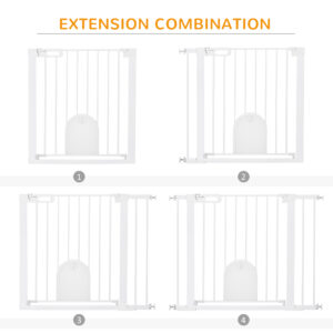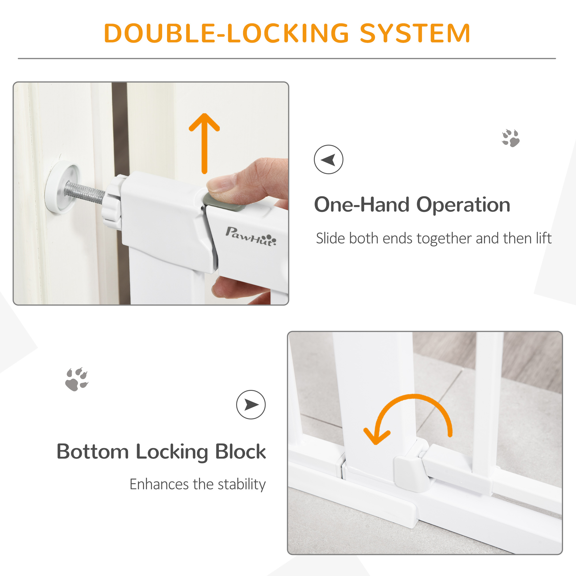 Keep pets away from rooms when required with this Pawhut pet stair gate. Made from sprayed steel with lead-free treated surface for strength and safety. Ranging from 75 cm to 103 ??cm wide, allowing it to fit into different sized spaces with ease. Slide and lift, the handle is easy to open, allowing you to pass through quickly without your pet escaping for security. Double locking mechanism ensures your pet secured in a place to provide the maximum safety.