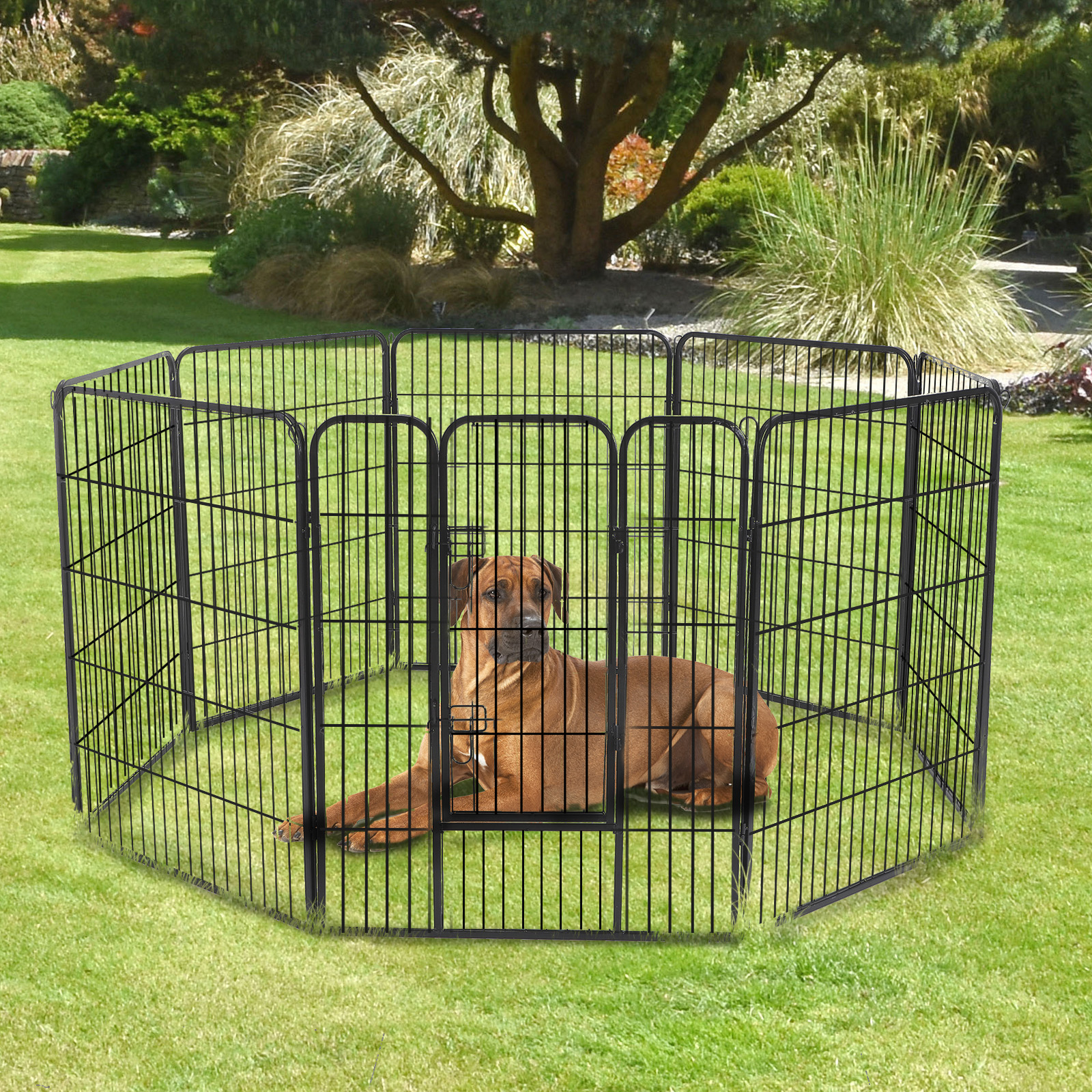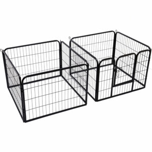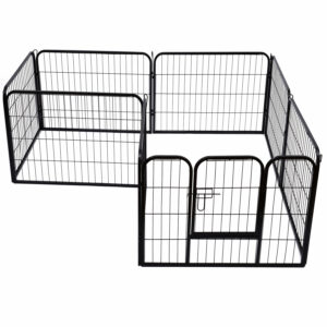 This pet playpen are perfect for a variety of pets. It can be easily set up for indoor and outdoor use. 8 durable panels could be folded up for easy storage. Sturdy metal wire with anti-rust coating ensures long time use. It will be a secure protection area for your pets?? living and romping around outdoors without your worries.