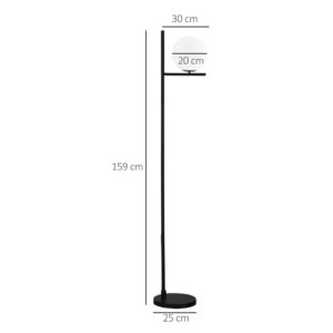 Let your lighting do the talking with this floor lamp from HOMCOM. Design fuses a tall, slimline frame, with a glass ball shade fixed on a side arm at the top. The opaque finish of the shade lets out a gentle glow, so it softly illuminates your space – perfect for when you want to create a calm atmosphere whilst the standard lamp is effectively lit up. The frame, made from steel is tough, with a round base for balance. The corner lamp is finished with a foot switch to turn on and off easily.