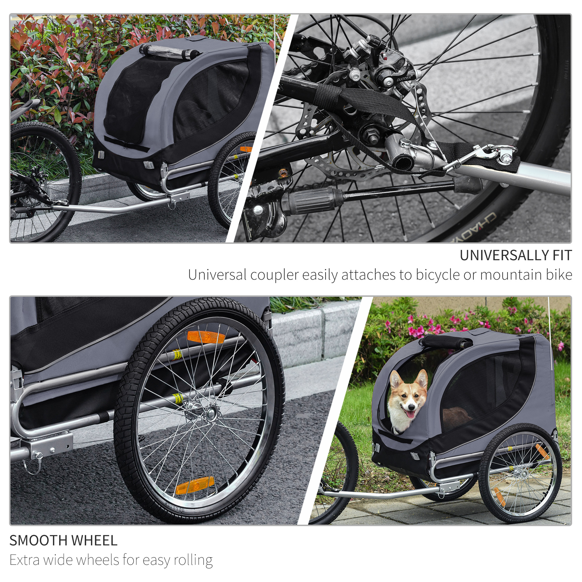 Drive your pet around the streets in style with this dog trailer for bicycle from PawHut. With a steel frame for a strong and reliable structure, the dog cart is made into a spacious design, featuring mesh windows all around to allow air to circulate properly, reflectors and a flag for visibility in the dark, zip fastenings for easy access and an safety anchor point for security. Made from weather resistant Oxford fabric, the body shelters your pet from light rain.
