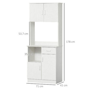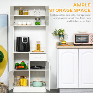 Creating a stylish storage option has never been so easy! This modern storage cupboard from HOMCOM fits nicely with any decor and can be used in the kitchen, dining room, living room or study to create stylish additional storage. It comes with 3 door cabinets, a storage cube and a pull out drawer for kitchen utensils and plates. With its compact design and great storage capabilities, your kitchen cabinet will give you perfect usage experience.