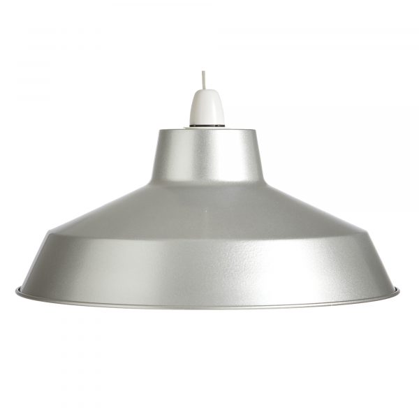 A very popular kitchen or dining area shade made of steel 35cm dia. in a variety of colours mostly with white inside the shade to reflect the light. This model is Aluminium painted and looks great with a d_cor bulb in Led which we can also supply.
