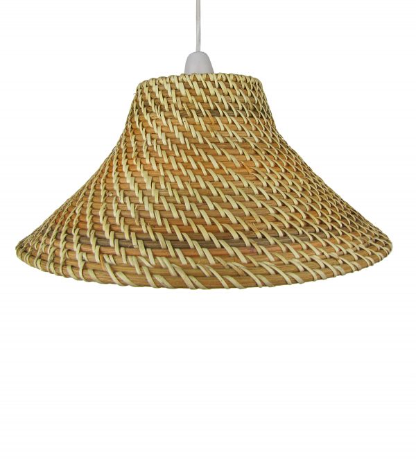 Very modern elegant Coolie woven bamboo shade in Light Brown and natural woven together, 37cm dia. Ideal with 100watt Led globe bulb.