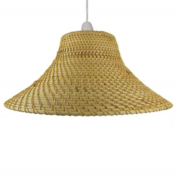 Very modern elegant Coolie woven bamboo shade in Dark Brown and natural woven together, 37cm dia. Ideal with 100watt Led globe bulb.