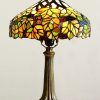 This is a 33cm shade in stained glass featuring the ever popular dragon fly in opalescent green and blue glass, the shade is then adorned with beautiful blue jewels and fits on to tree base reaching up to 40cm when together.