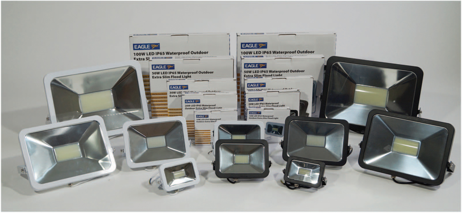 The IP65 rated ultra-slim LED Waterproof Outdoor Flood Lights in this range are fitted with a top quality reflector for better wide angle and light enhancement. Manufactured in a sleek and stylish PAD design from high grade aluminium alloy body, resistant to both shock and vibration. Each LED Floodlight is an energy efficient lighting source with potential savings of up to 75% in running costs compared with similar products. Ideal for most types of external lighting whether home, office or commercial premises. Available in Black or White. 2 Years Warranty.