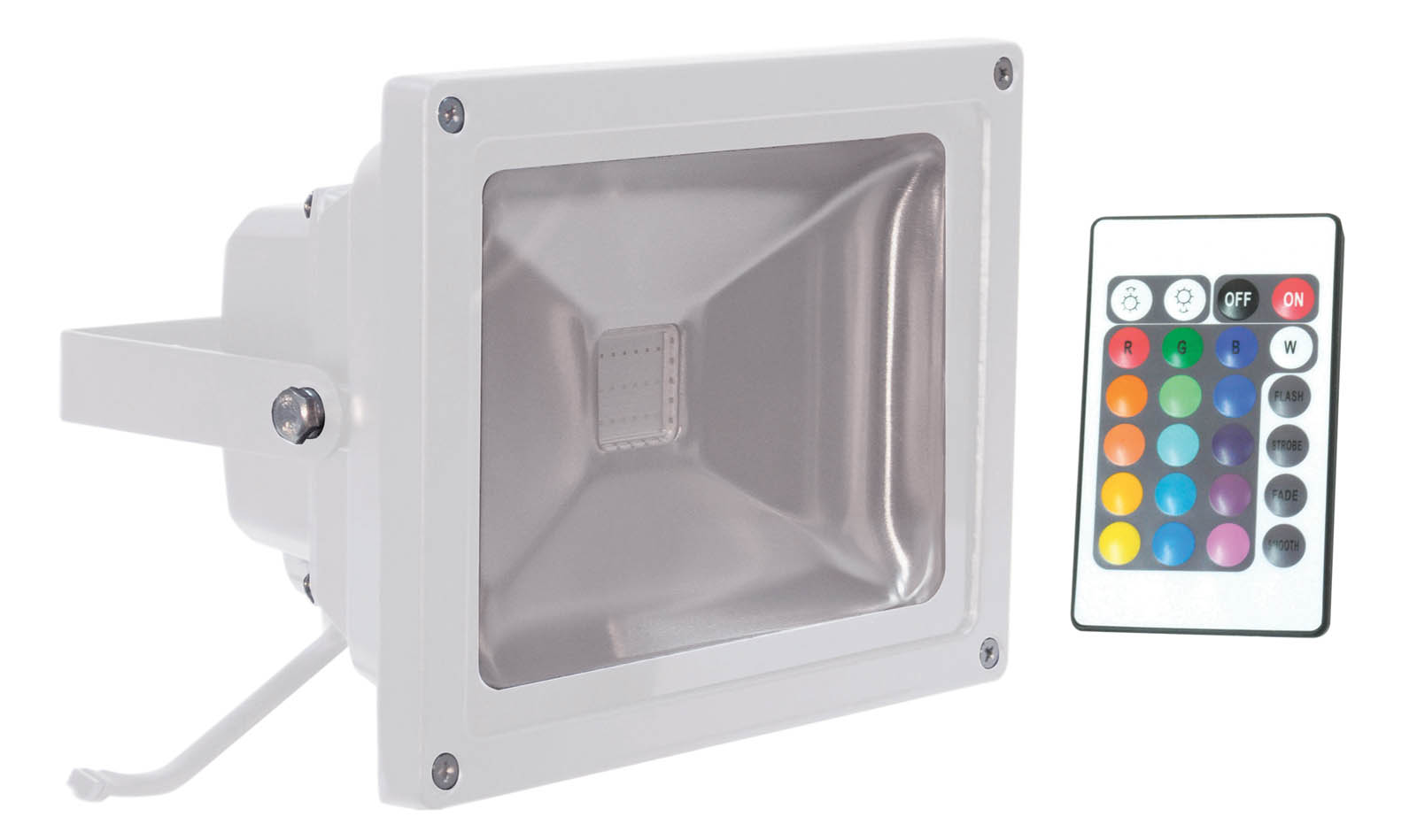 The RGB LED IP65 Waterproof Outdoor Colour Wash has a robust, aluminium alloy body with toughened glass. It is an efficient themed lighting source with potential savings of up to 80% in running costs compared with similar products. This is a super bright floodlight and has 16 colours and effects available via the infrared controller which has last memory re-set. Recommended for indoor and outdoor use including general themed lighting for bars, clubs and theatres, outdoor stages and garden/patio colour washing. Create dramatic or subtle effects; ideal for commercial or home use. 2 Years Warranty.