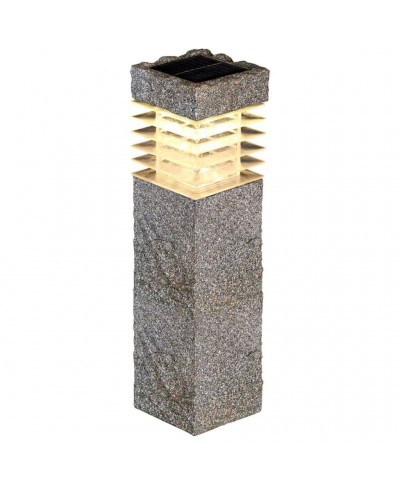 This solar post light is suitable for atmospheric illuminating of walkways and borders, it will mark along driveways, garden paths, terraces and porches. This light features an on/off switch and a dusk/dawn sensor which ensures the light switches on at dusk and automatically shuts off at dawn. The light also has a ground spike so that it can be easily placed into soil. This High Lumen Solar light has a higher number of lumens relative to a normal solar light. This ecologically friendly solar light requires no household current to operate but gathers the energy directly from the sun. It is therefore especially suitable for use in remote areas and provides sufficient light to mark entrances, accent walkways & steps. The light is made of a Polyresin which is a combination of natural stone and resin. This mixture creates a surface that is resistant both to weather and algae growth.