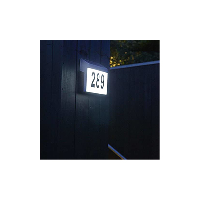 This solar house number wall light is designed specifically to illuminate your house number, it also provides functional lighting to the area nearby. This light is supplied with an on/off switch. This attractive IP44 rated energy saving LED Solar light uses the integral solar panel to recharge the battery throughout daylight hours using free energy from the sun, once charged it will provide up to 8 hours of light. When dusk falls, the light will automatically turn on and turns off again at dawn. This light is supplied with sheets of numbers so that it can be customised to match your address. Manufactured from UV resistant plastic.