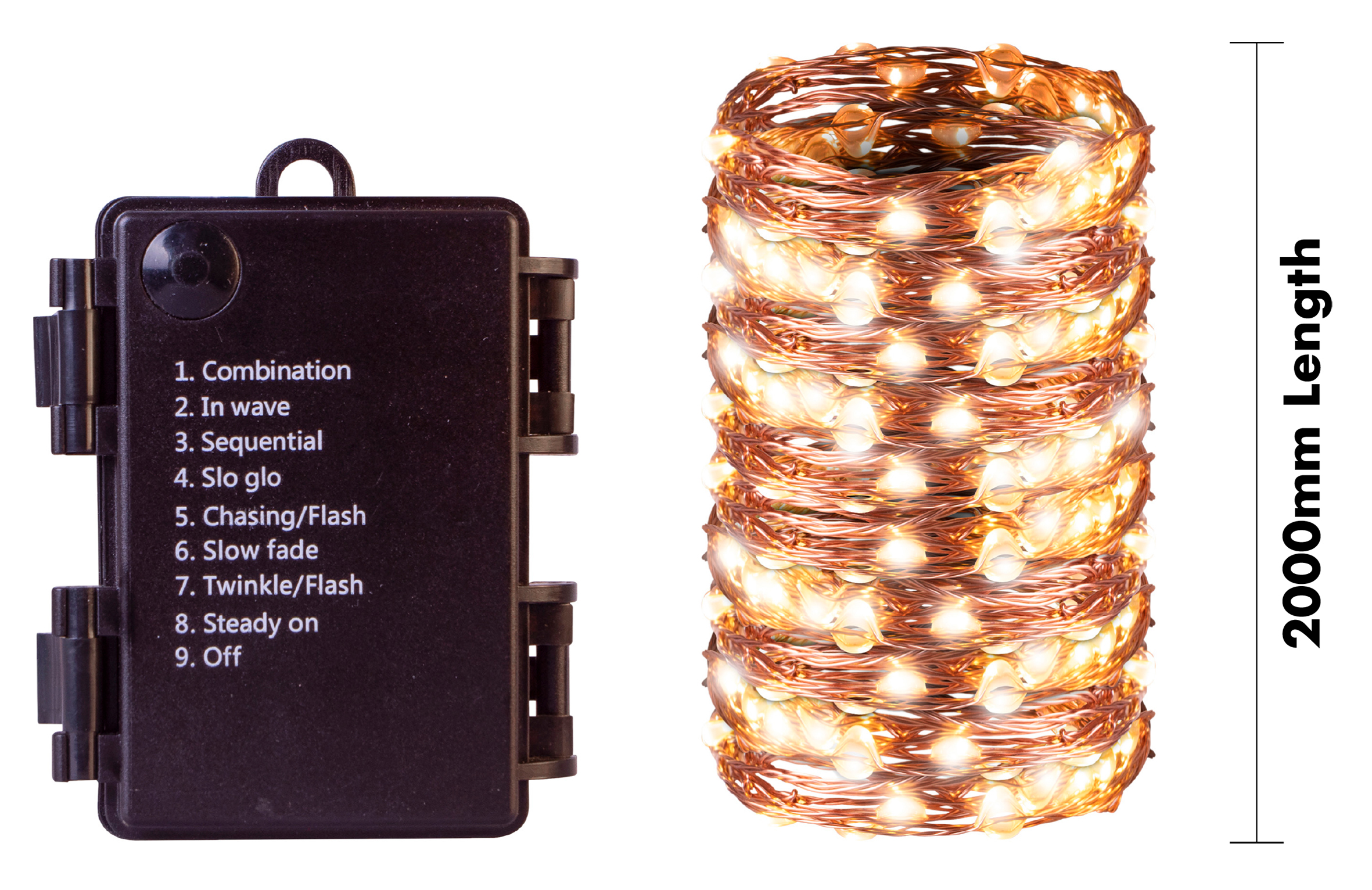St. Helens Home and Garden 20m Copper Battery 200 LED Fairy String Light With Controller. For Indoor and Outdoor use. Use at Christmas, Wedding party and for Decoration.