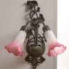 Jewelled shaped wall light and amber jewels and opalescent beige glass. Light 25cm diameter and can take up to 60 watt to illuminate a small room or higher LED wattage. Stunning vibrant colours.