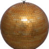 A lightweight gold mirror ball which creates a sparkling, shimmering light extravaganza adding an authentic disco atmosphere to parties, barbecues, dances, etc. when a spot light is shined at the ball. Made from lightweight material and covered with polished golden mirrored glass facets.