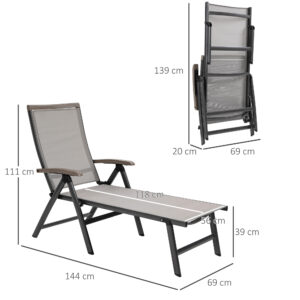 This reclining sun lounger from Outsunny is perfect for relaxing in the sun for hours on end. The breathable mesh fabric on the seat and back holds you comfortably, with high back and armrests for support. Adjustable to five positions, you can change what position you lay back. Folding design make the garden sun lounger is easy to carry with you and store.