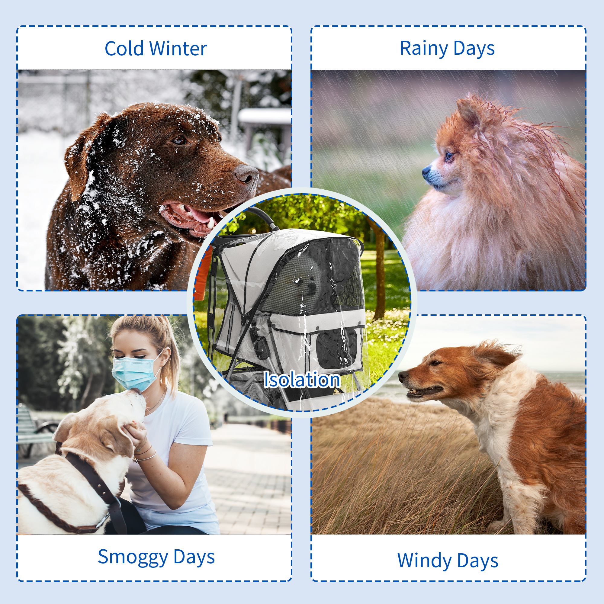 - Protects pets from wind and rain