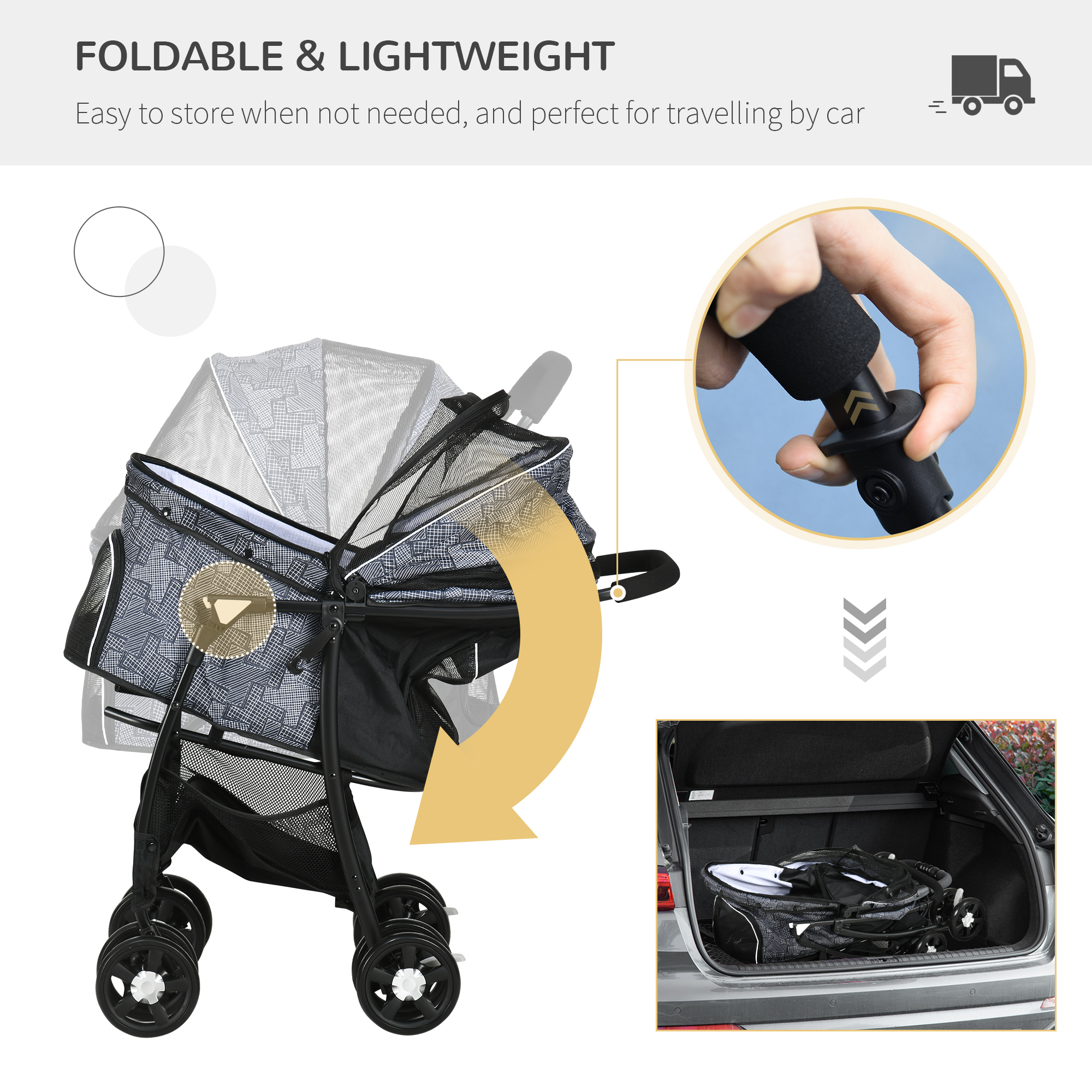 PawHut Pet Stroller Dog Pushchair Cat Travel Carriage Foldable Carrying Bag w/ Universal Wheels, Brake Canopy for XS & S Sized Pets,