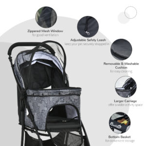 • Smooth rolling & safe: Two ??13.5cm EVA rear wheels with brakes for easy parking and two universal front wheels provide a smooth ride and are off-road friendly, as well as 2 safety leashes inside to keep your pet securely strapped in.