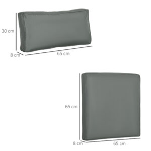 • Dimensions: Seat cushion: 65L x 65W x 8Dcm. Back cushion: 8H x 65L x 30Wcm.