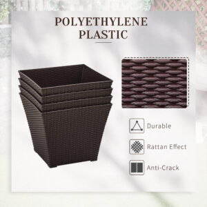 Something different to show off your flowers and more: these four Outsunny patio planters. A set of four means a matching look in your home and outdoors – use together or separately: the choice is yours. Made from plastic for durability, they’re styled into a rattan-effect design, making them super easy to pair with your current garden and outdoor furniture. Brining in a breath of life into your home, the stylish way.