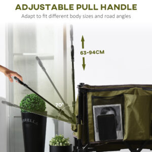 As a beach trolley, for festivals – or general help around the garden and home: this Outsunny trolley is here to help for practically anything. Combining a folding steel frame for a strong structure, it’s fitted with a fabric bag to hold everything safely in place. Four wheels to move it around easily; brakes so it stands in place whenever you need. The adjustable handle means you can push and pull this trolley around whenever you want – complete with seven handy outside pockets.