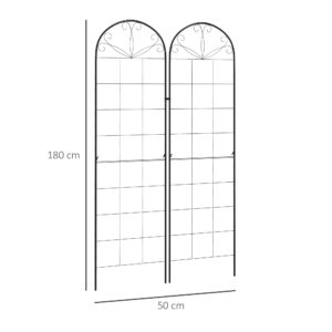 These Outsunny metal garden trellis frames allow you to grow plants vertically. A pack of two for double the growing room. Both are made from powder coated metal for a strong structure. Bottom spikes to insert into the ground. Complete with a three-leaf design on the top for decoration.