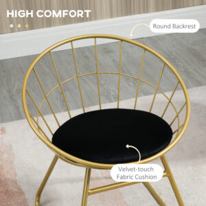 Let these two HOMCOM dining chairs lead unique style, in your home, this season and beyond. Look at the steel frames – not only do they support you, but they are formed into a caged design, in a gold-tone finish: a striking design which brings character into your space. Complemented with the velvet-feel cushions to keep you comfortable as you sit.