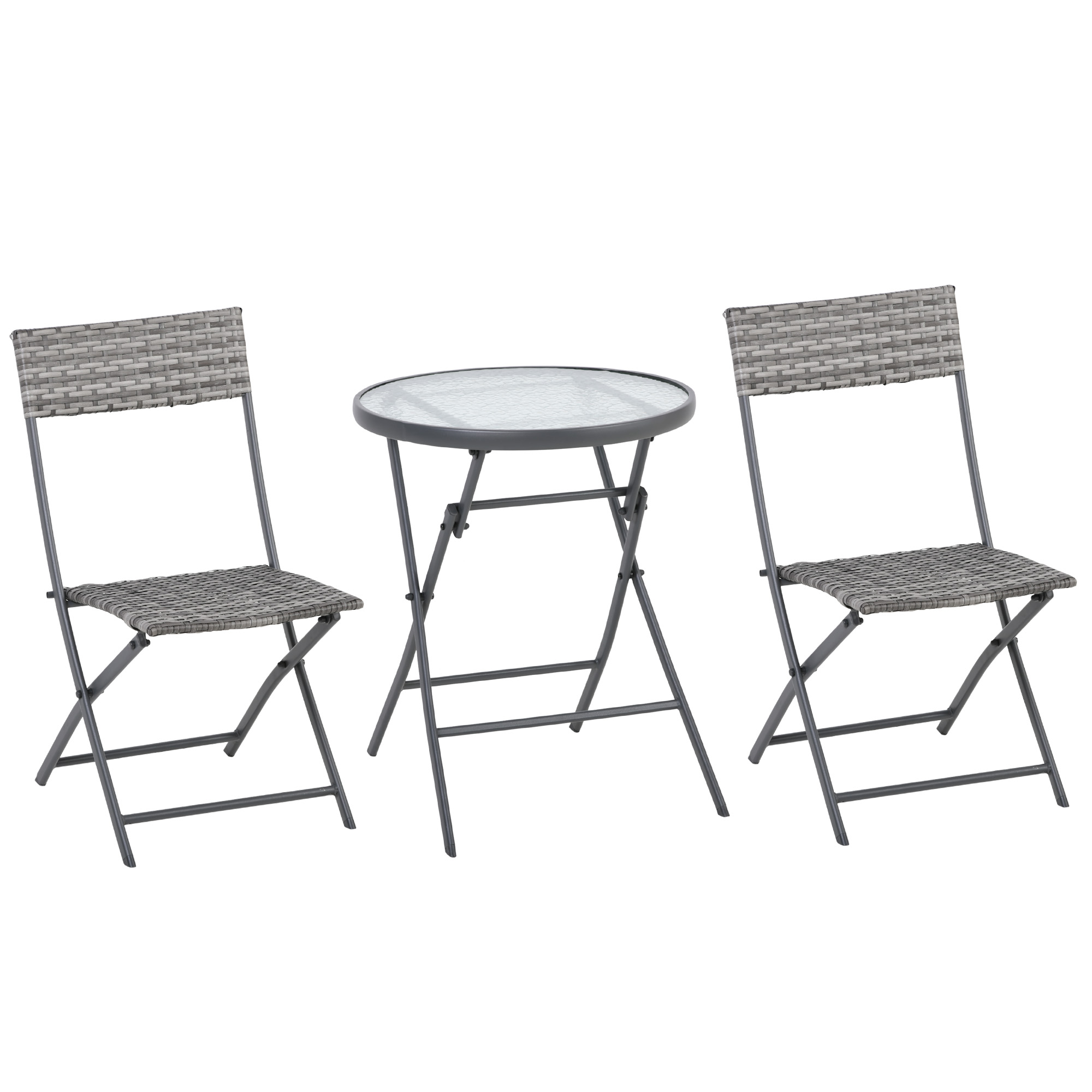 Outsunny’s lovely bistro set brings your home decor a delightful upgrade. This foldable option not only provides compact convenience but also features a stunning woven look that instantly upgrades any existing decor. Made of steel frame and durable PE rattan wicker. Round table with tempered glass tabletop allows easy cleaning with a damp cloth, this set offers reliable durability that naturally withstands most weather conditions. Let this bistro set brings you a happy leisure time.