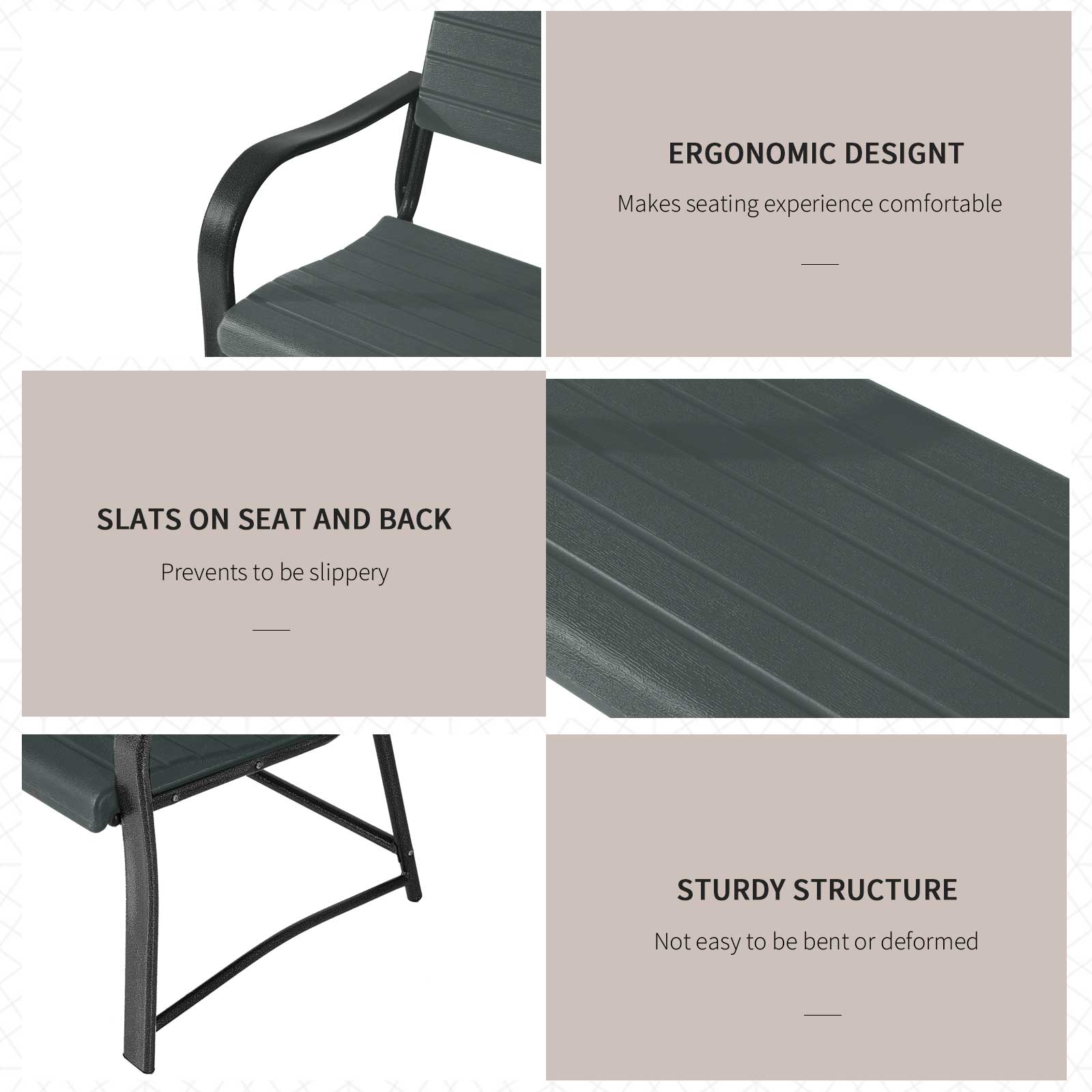 This Outsunny, 2 seater bench is a great solution to have in your garden, made with a metal frame with HDPE plastic. This is a great bench to have for you to enjoy the outdoors, with a weight capacity of 240Kg. It is very easy to look after and maintain, this item will look great in any outdoor setting and would will be a great addition to your outdoor living space.