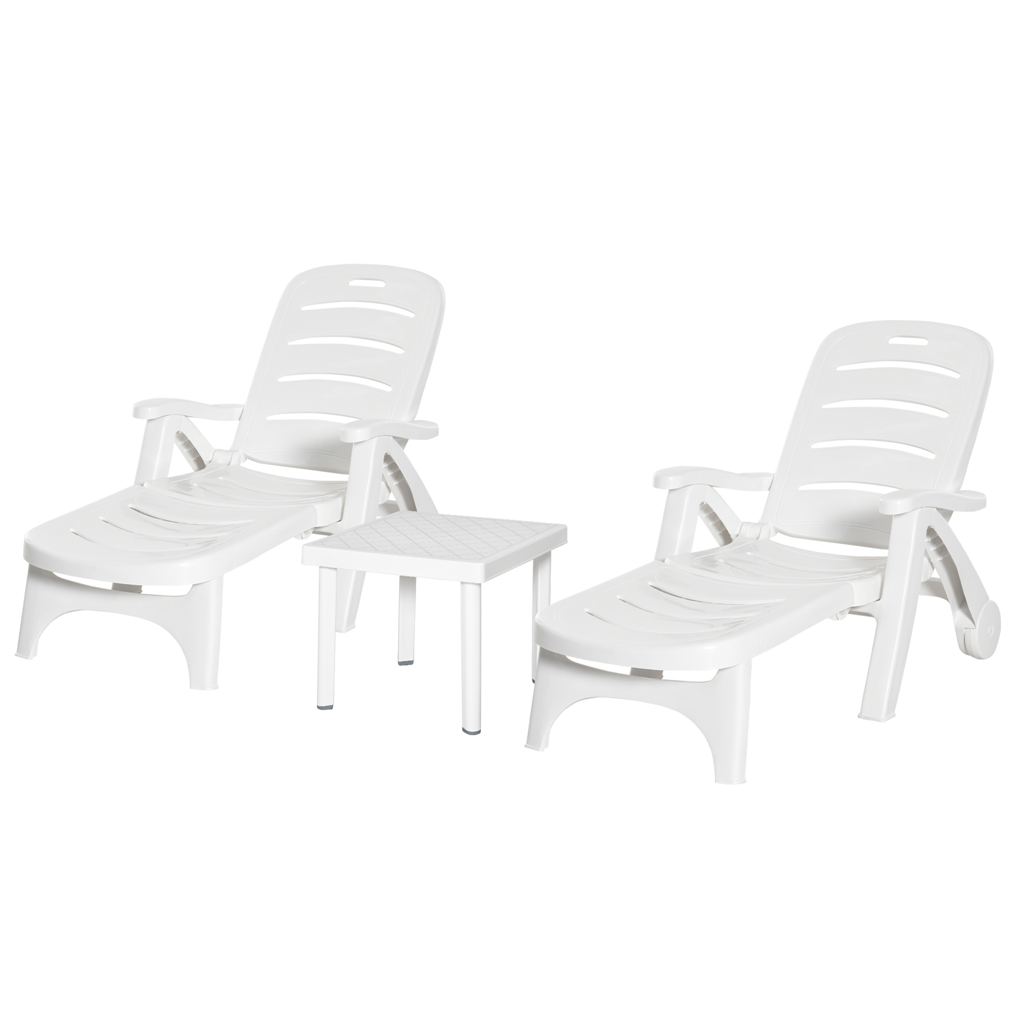 Use this fashionable garden table and chair set to create a warm and convenient space in the outdoor garden. Enjoy the great outdoors with this accent table. It provides a place for keeping drinks and food on whilst you relax outdoors. Chair’s Backrest angle is 5-tier adjustable so that you can always find a comfortable position to read, sunbath, etc. And it is foldable and features wheels for easy transport. Come and have this garden furniture set, enjoy the outdoor fun with family and friends.