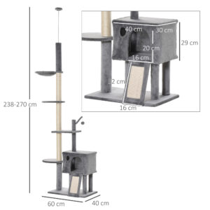 - Features scratching posts, scratching board, hammock, perches and cat toy