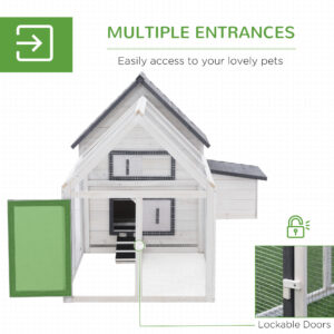 This deluxe chicken coop, from PawHut, gives your outdoor pet the best of both worlds, thanks to the house and protected outdoor enclosure design. Made from weather-resistant fir wood, this piece is tough and suitable for outdoor use, with the metal wire fencing keeping them protected from escaping. Features a removable tray for easy cleaning. A stylish and functional living environment.