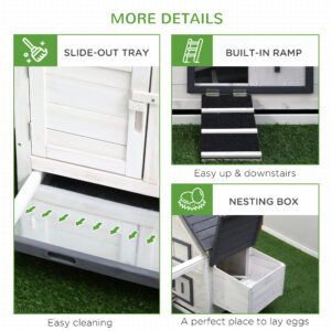 - Ramp allows chickens to easily enter and exit the house