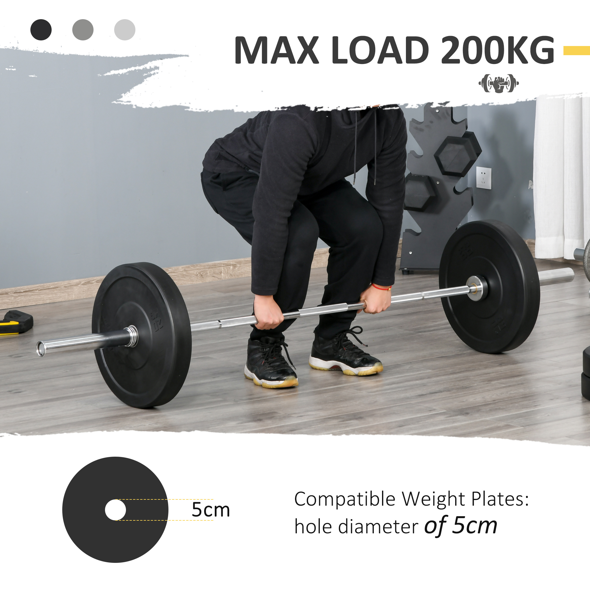 The Barbell Bar is made of high-quality steel, which is sturdy and durable, providing maximum safety and maximum load of 200kg. With the anti-slip handle design, your security is guaranteed. A wide range of exercises ranging from bench presses to squats and everything in between is available. It??s suitable for performing basic toning body workouts at home, office and gym. With free combination of different weights of barbell pieces, it??s the best choice for beginners and even advanced users.
