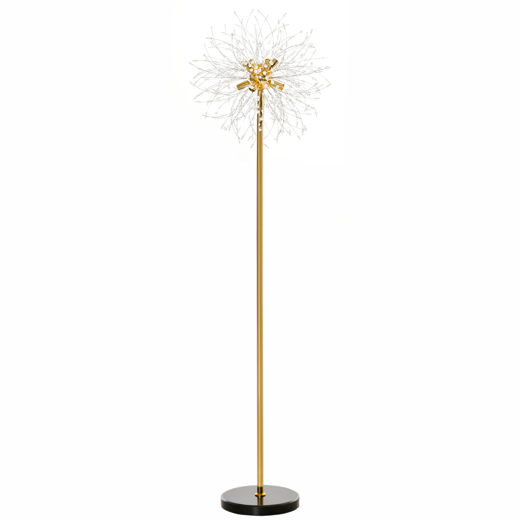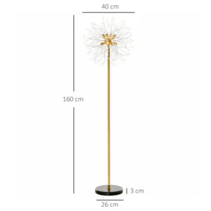 Elegant home decoration with this HOMCOM floor lamp. A dandelion/firework flower design, where all strands are fitted with crystallite beads – catches the light and sparkles. A metal frame for a strong core, finished in a gold tone for extra elegance. Complete with a foot switch to turn on/off, and a marble base to keep weighted.