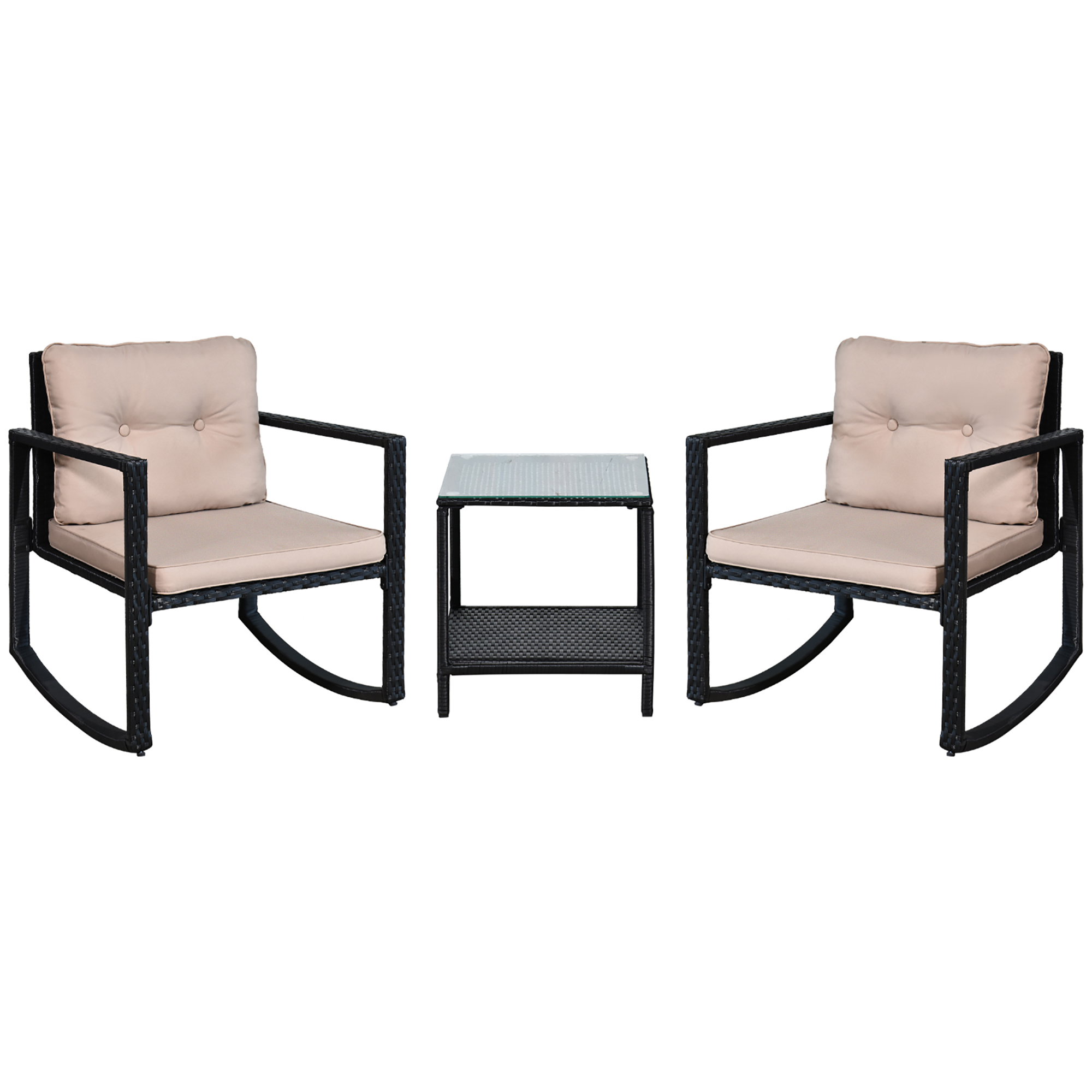 Outsunny 2 Seater Rattan Rocking Set Patio Bistro Table Chairs Conversation w/ Cushion