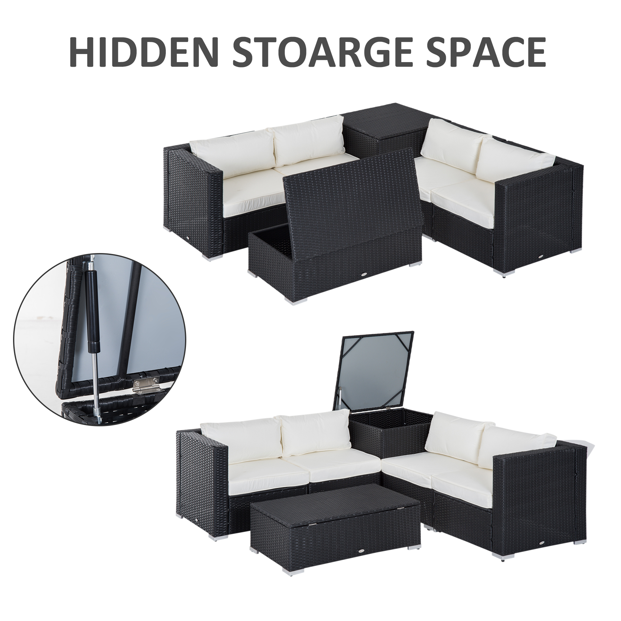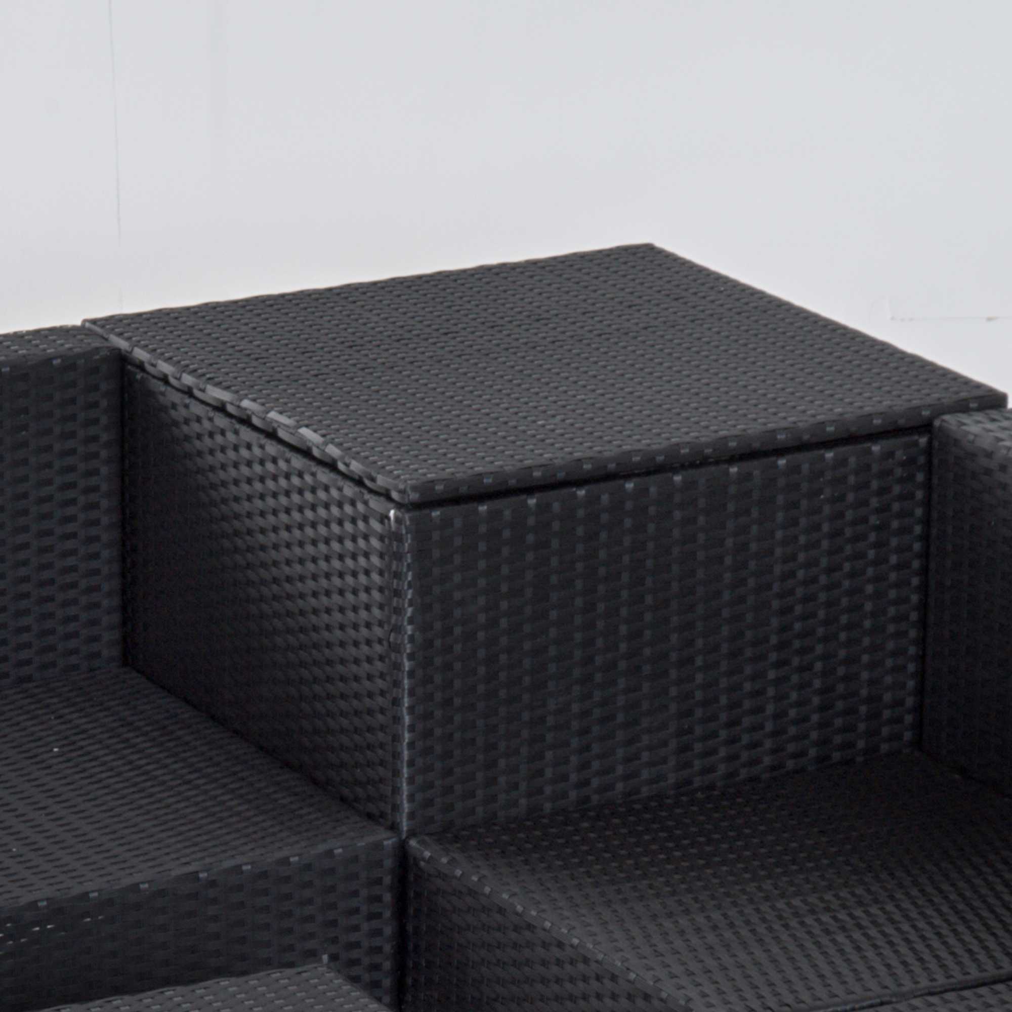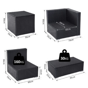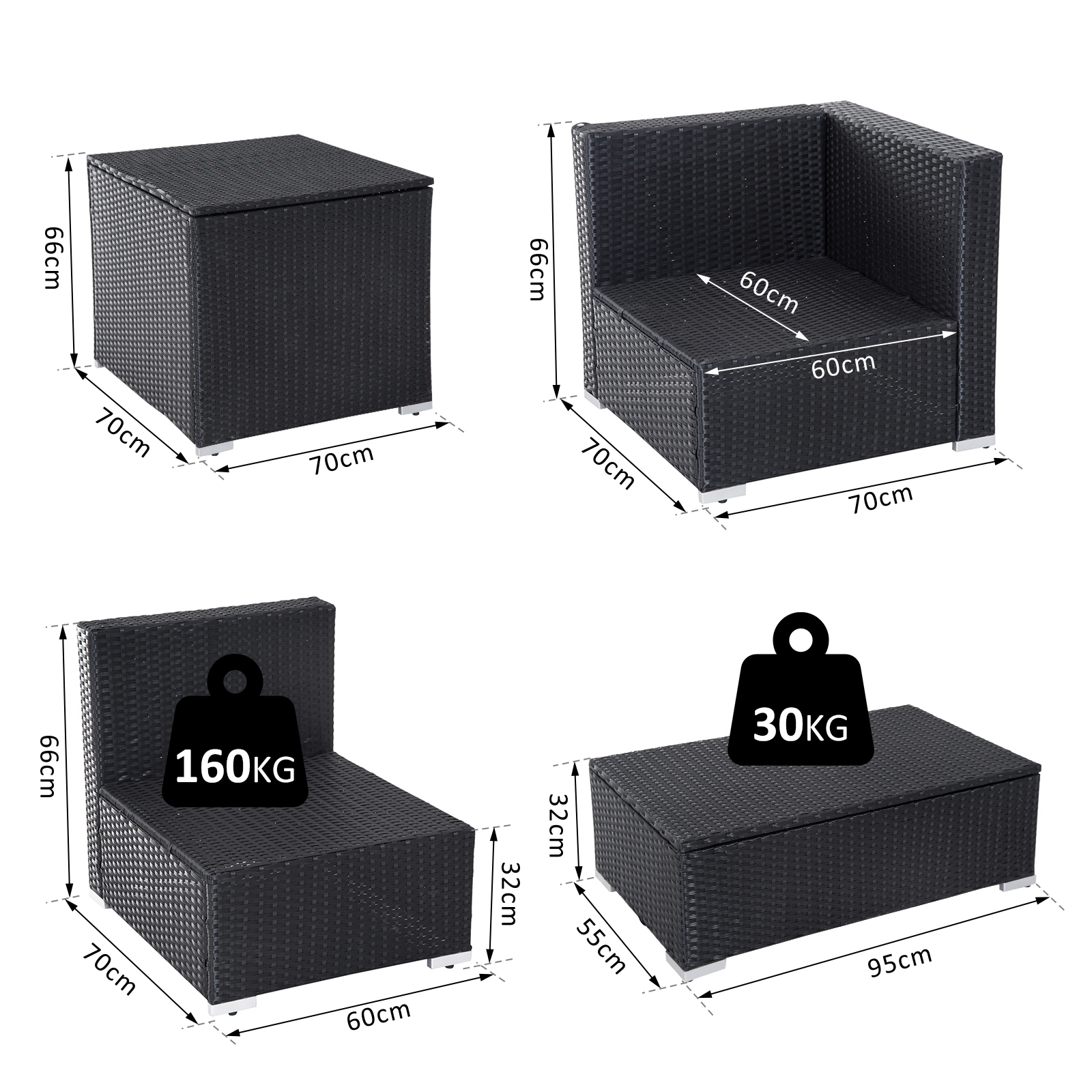 The Outsunny garden rattan furniture sets are a great addition to your outdoor living spaces. The grey rattan sofa set is formed of two corner seats, two single seats, side table and a coffee table. All pieces of the conservatory furniture are made with a metal frame, wrapped with plastic rattan – strong and fully supportive. Both the side table and coffee table of the outdoor furniture feature storage – simply lift the lids to reveal. Completed with seat and back cushions for comfort.
