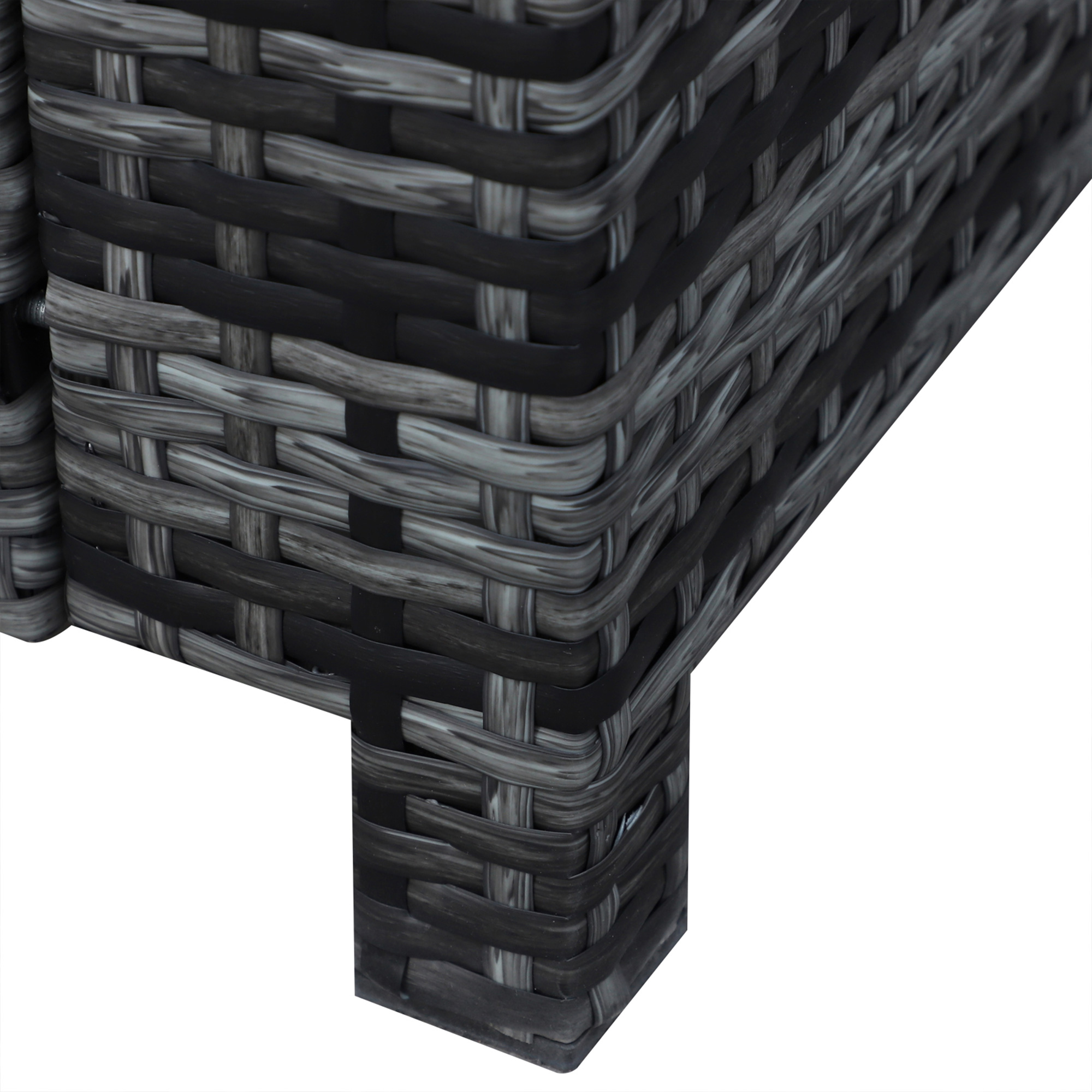 If you love to lounge outdoors, this three-seater outdoor sofa from Outsunny is the piece for you. Using a combination of a power coated and galvanised frame for the core, with plastic wicker, this piece has been made to last for years, with extra thick cushions on the seats and back. High on the back, with high armrests and longline seats for support, this sofa is finished with four feet to elevate and protect the main frame, as well as keeping it level and balanced on the floor.
